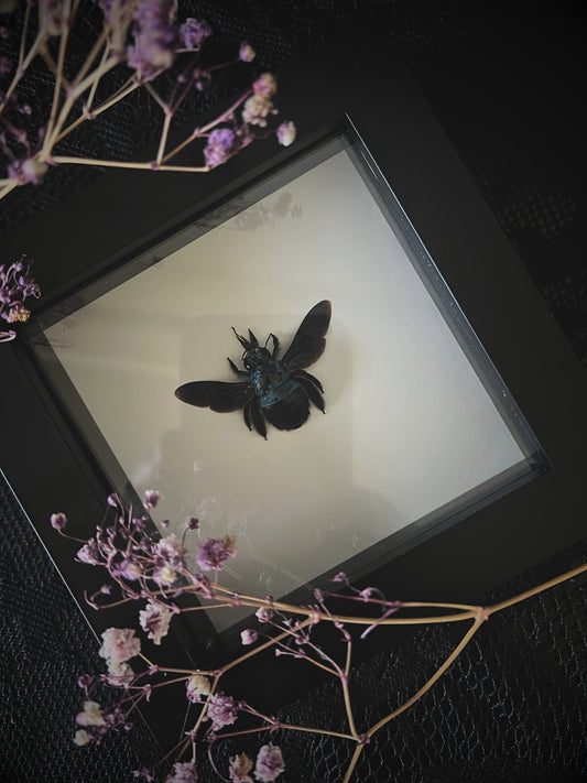 Blue Carpenter Bee (Xylocopa Caerulea) in Shadow Box Frame | Female