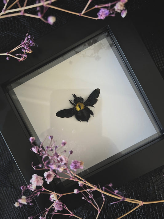 Yellow Carpenter Bee (Xylocopa Aestuans) in Shadow Box Frame | Female