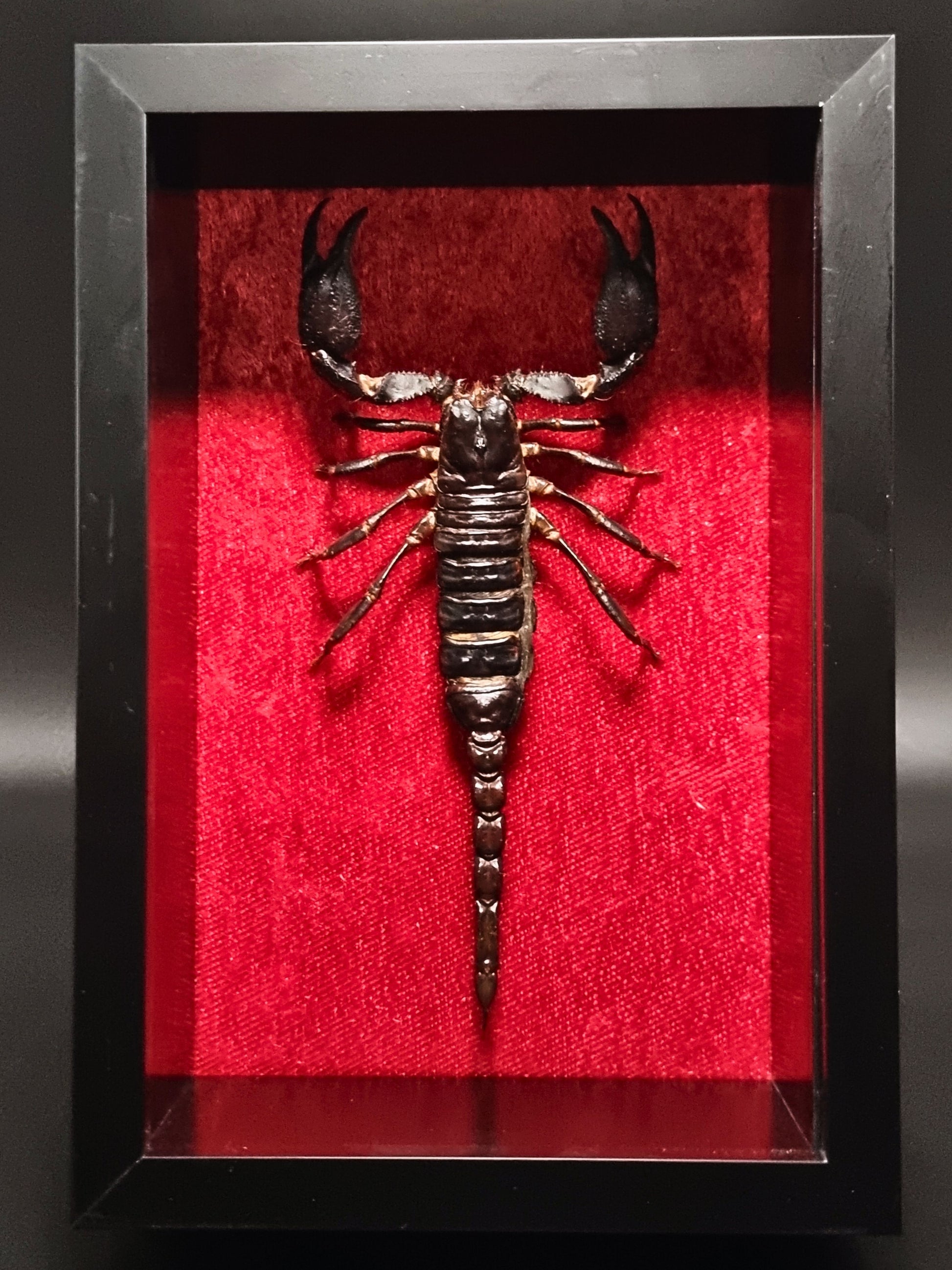 Asian Forest Scorpion (Heterometrus Spinifer) in Shadow Box Frame