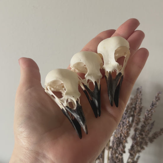 These magpie skulls have been thoroughly cleaned and are considered A quality as they are in perfect condition.
