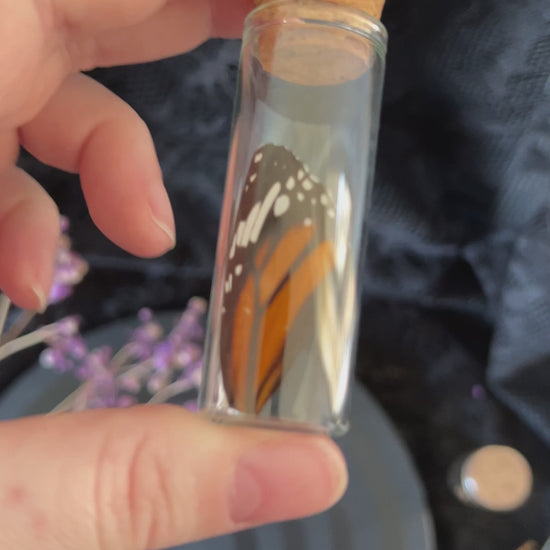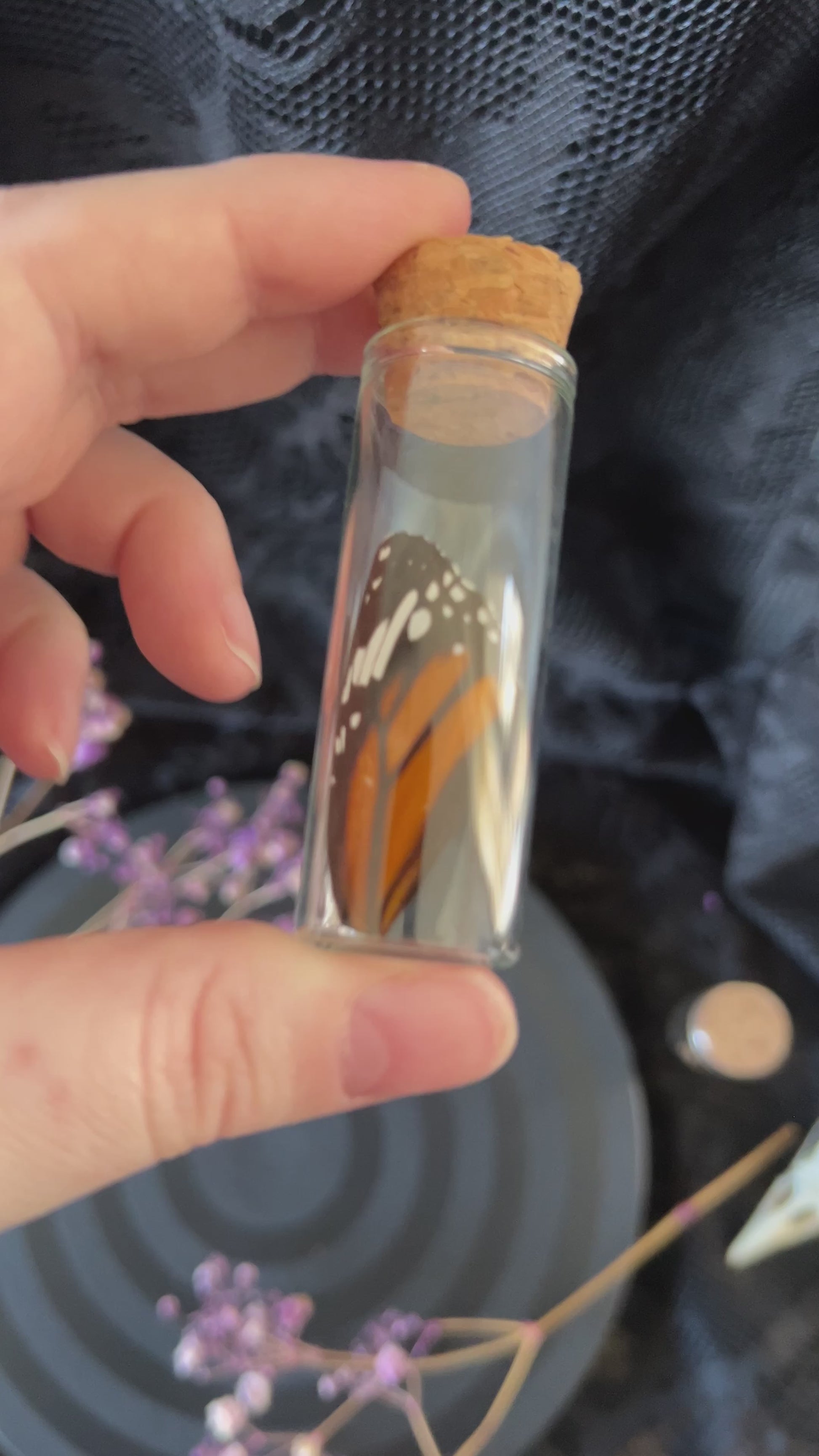 These are real, genuine, dried and preserved Monarch Butterfly wings in glass jars. They come as a set, so you will receive two glass jars - a larger jar with a forewing and a smaller jar with a hindwing.