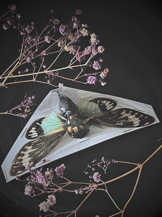 The Butterfly Cicada (Gaeana Festiva White) Spread Specimen