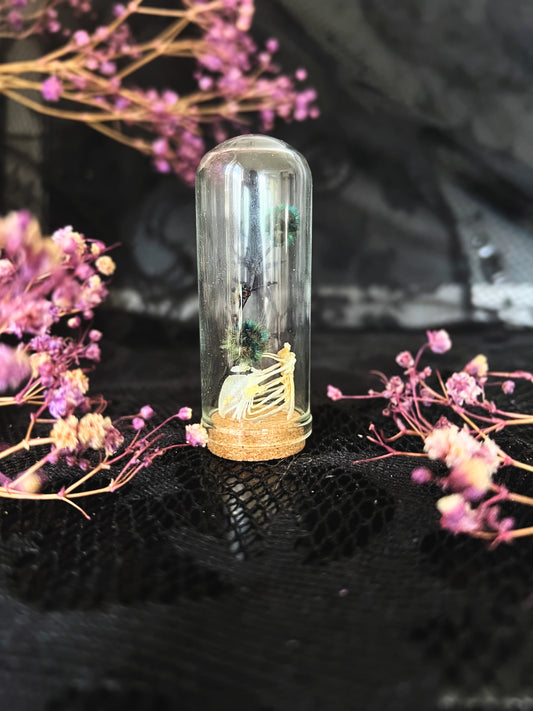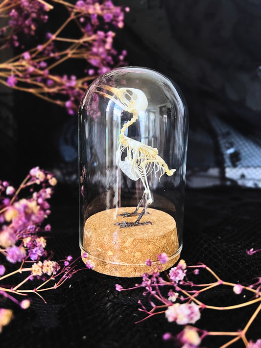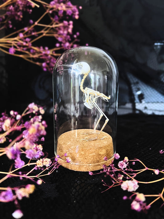 Plain Prinia (Prinia Inornata) Articulated Bird Skeleton in a Cloche Dome